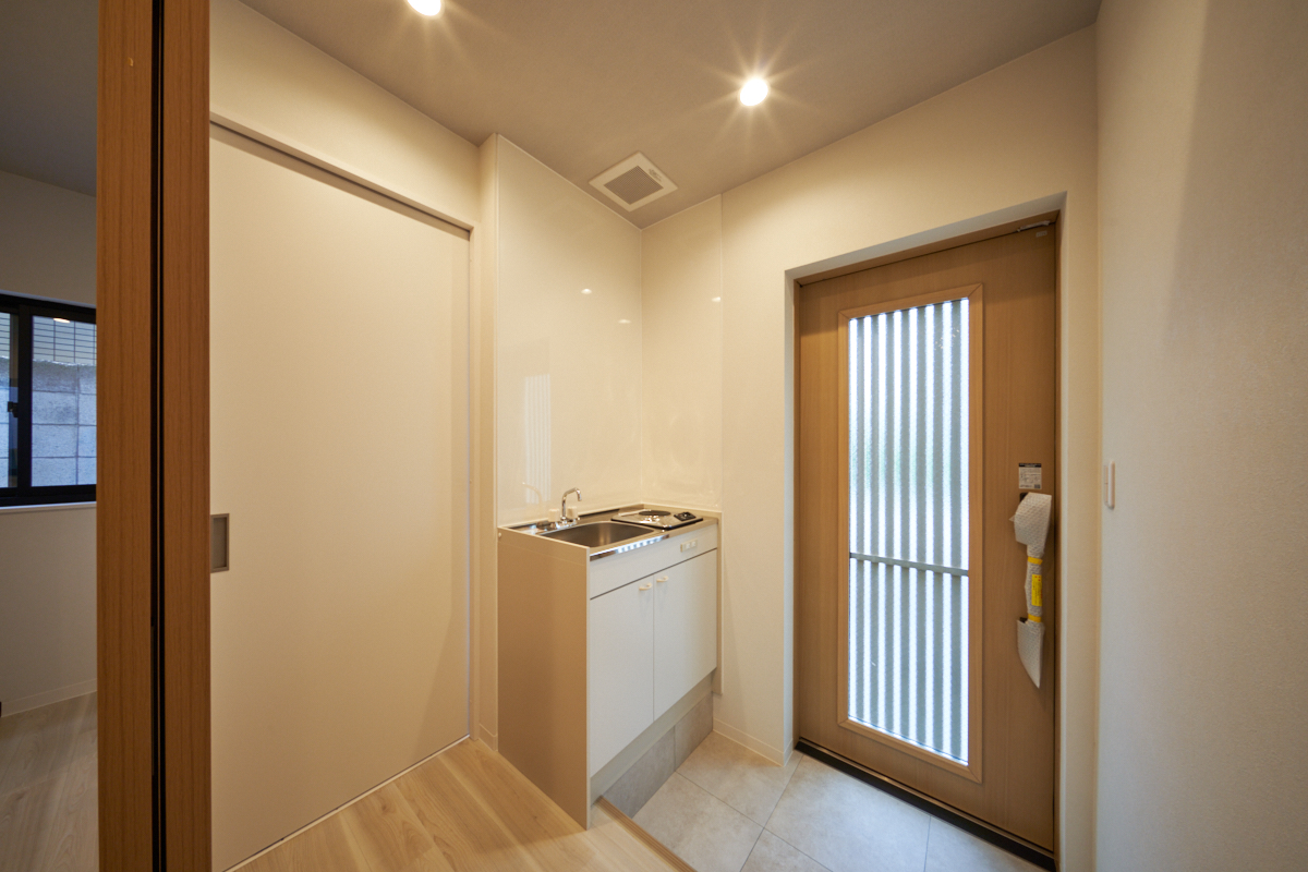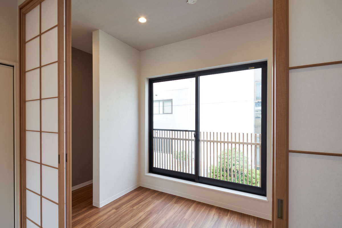 A Japanese modern style was expressed by changing the upper part of the exterior walls and the roof to galvalume, making the entrance door a slide door and designing the windows on the second floor with louvered lattices, so as to melt in with the historic sightseeing area of Shibamata.